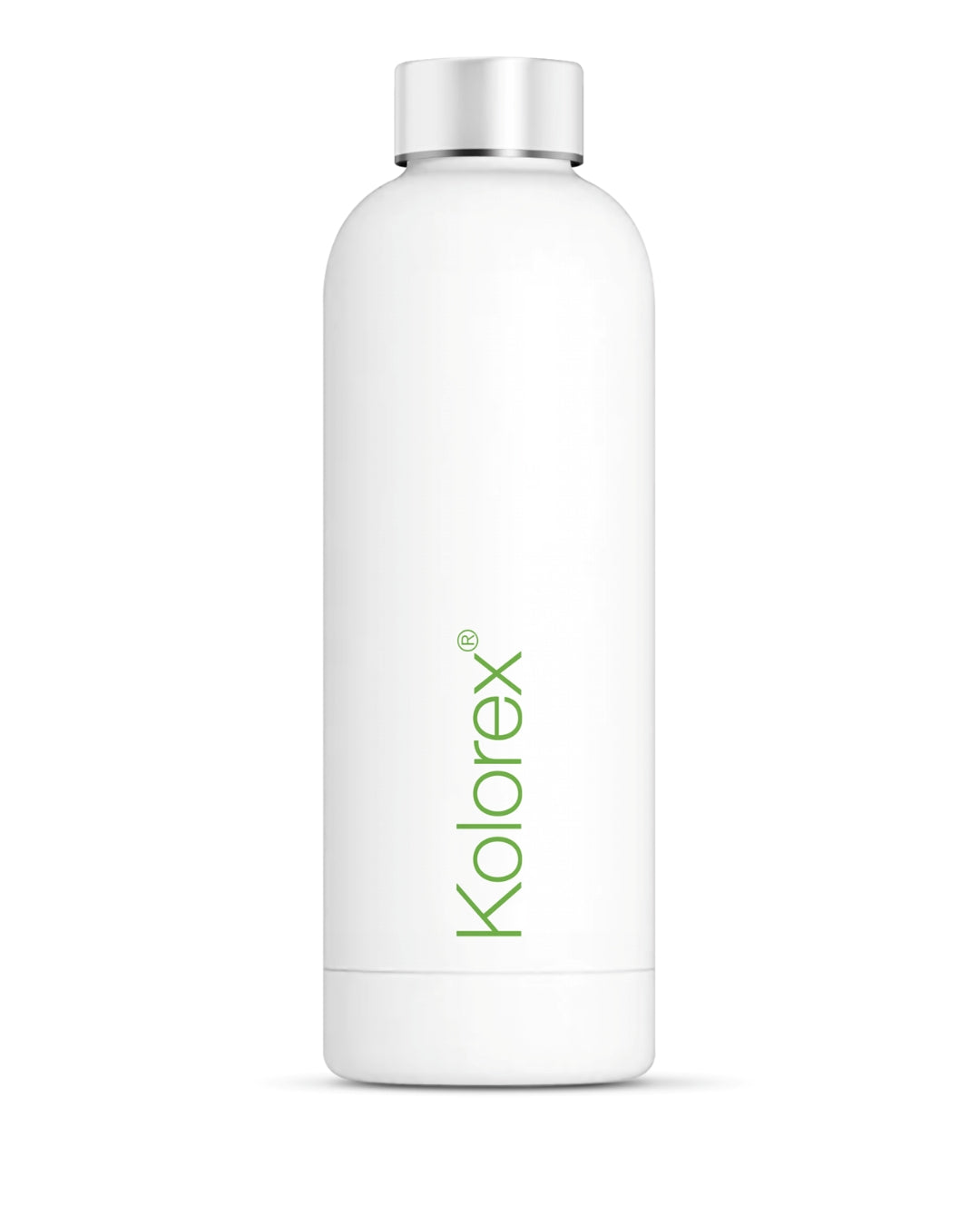 Hydration is key to supporting your gut health while taking Kolorex supplements. Our stylish, reusable BPA free, double insulated stainless steel drink bottle keeps water handy and cold for up to 24 hours HOT for up to 12 hours This bottle is perfect for the home, gym, office, road trip, sports event, and outdoor activities.